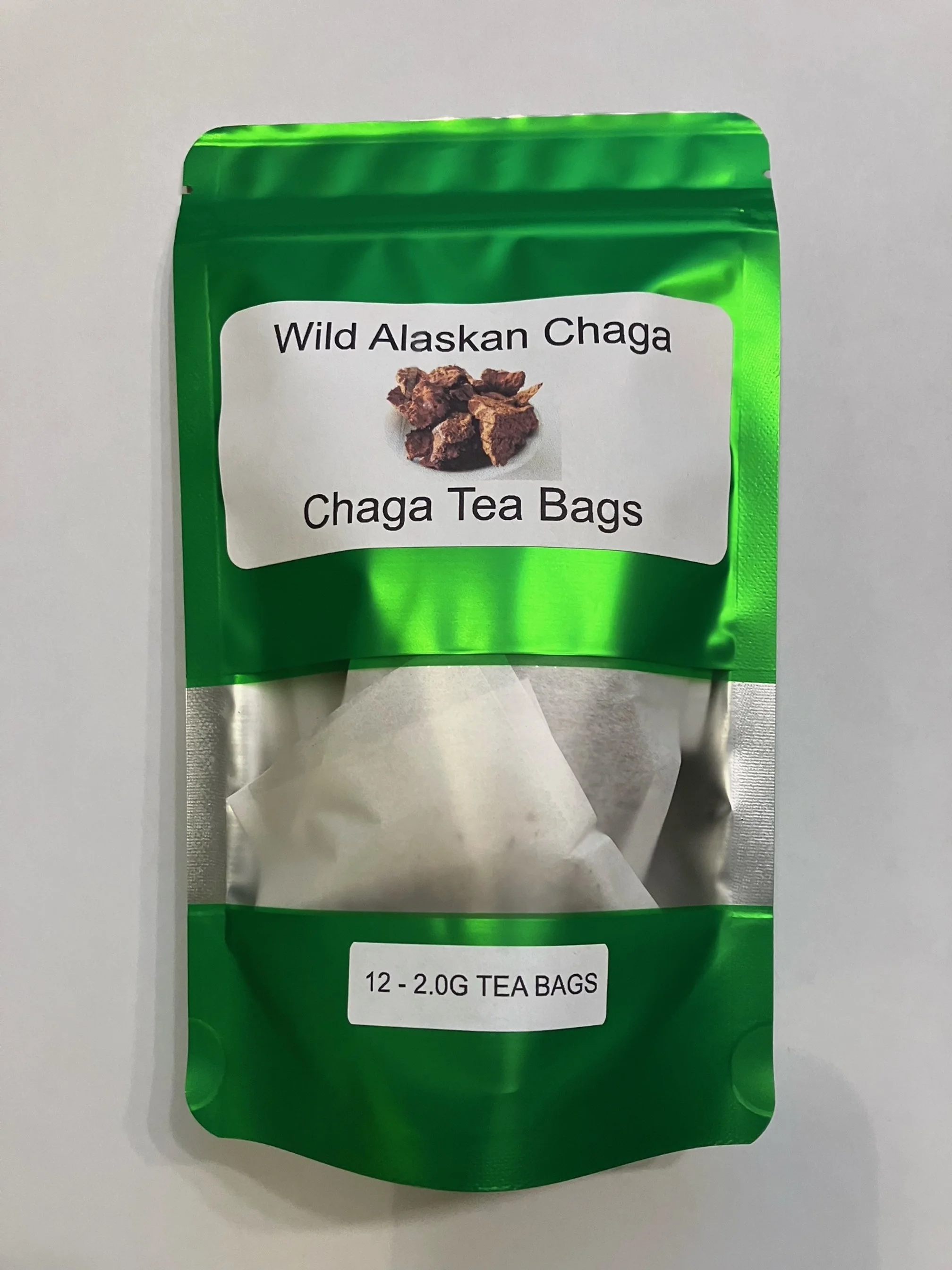 Wild Alaskan Chaga Chunks 4 ounces $10.95 Wild Alaskan Chaga Ground 4 ounces. $10.95 Wild Alaskan Chaga Tea Bags (12) 2.0 gram bags $8.95